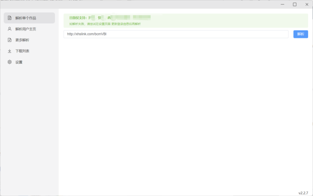 注意:软件必须得输入纯链接才可以解析,否则对应就会出现解析失败。