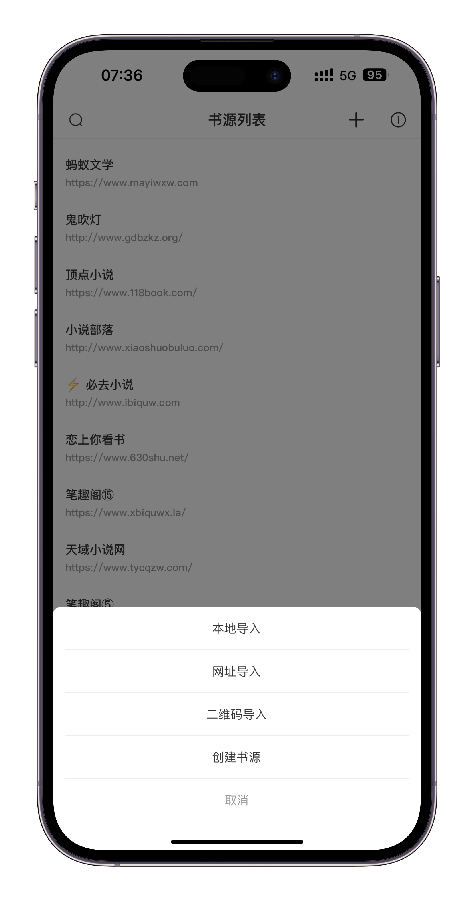 1.进入app,点击app下面菜单栏【书源】 2.点击【+导入书源】或 点击书源页面右上角【+】 3.选择【网址导入】 4.复制链接,并在app中输入链接以导入书源