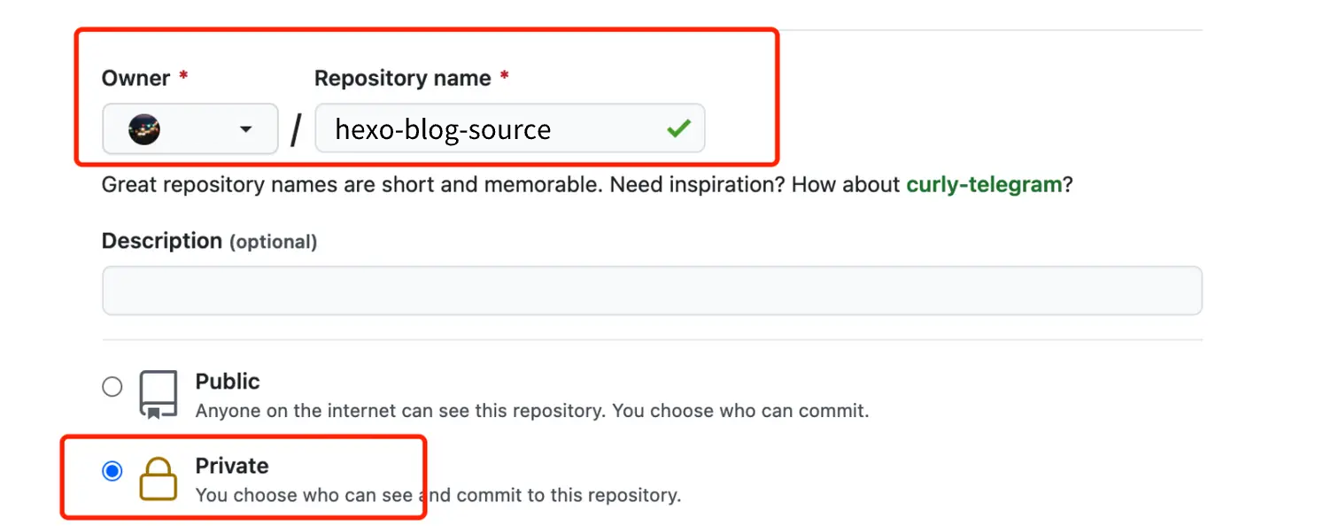 - 私有仓库用来存储 Hexo 项目源代码。(保证你的重要信息不泄露)