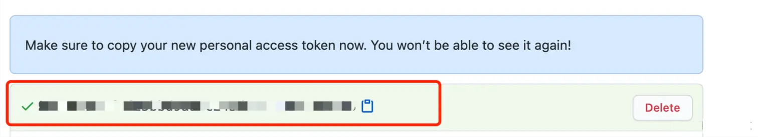 新生成的 Token 只会显示一次,如有遗失,重新生成即可。