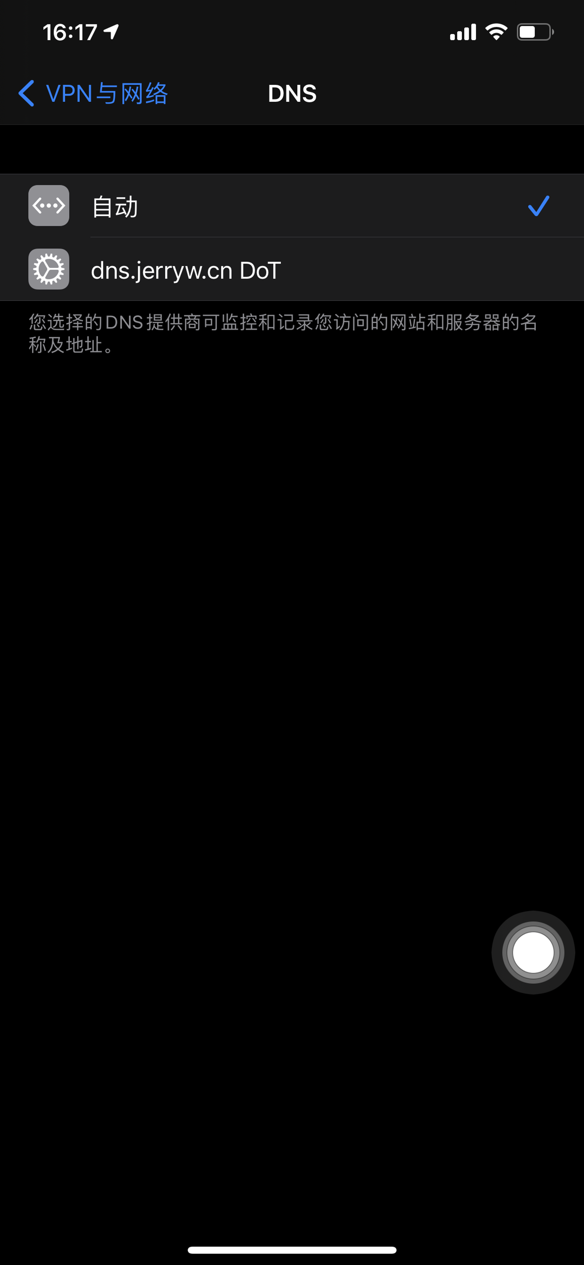 你可以通过「设置- VPN 与网络-DNS」设置及选择要使用的 DNS 配置。