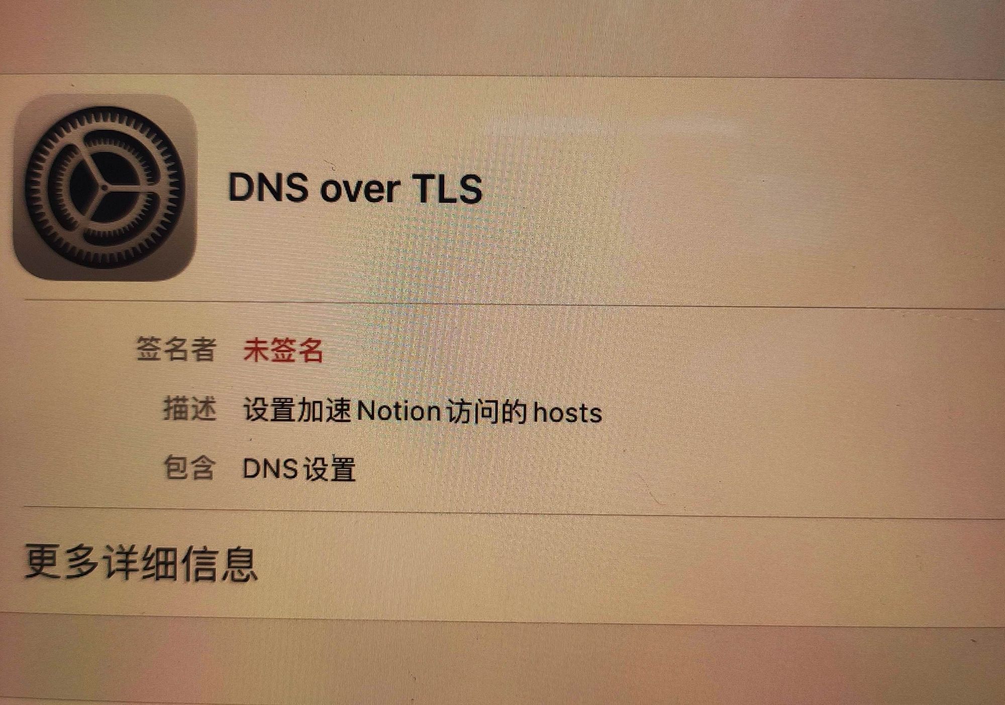 点击以查看刚刚下载的配置文件,选择右上角「安装」文件:(没有签名, 因为我还不是ios开发者…暂时可能没有必要吧)