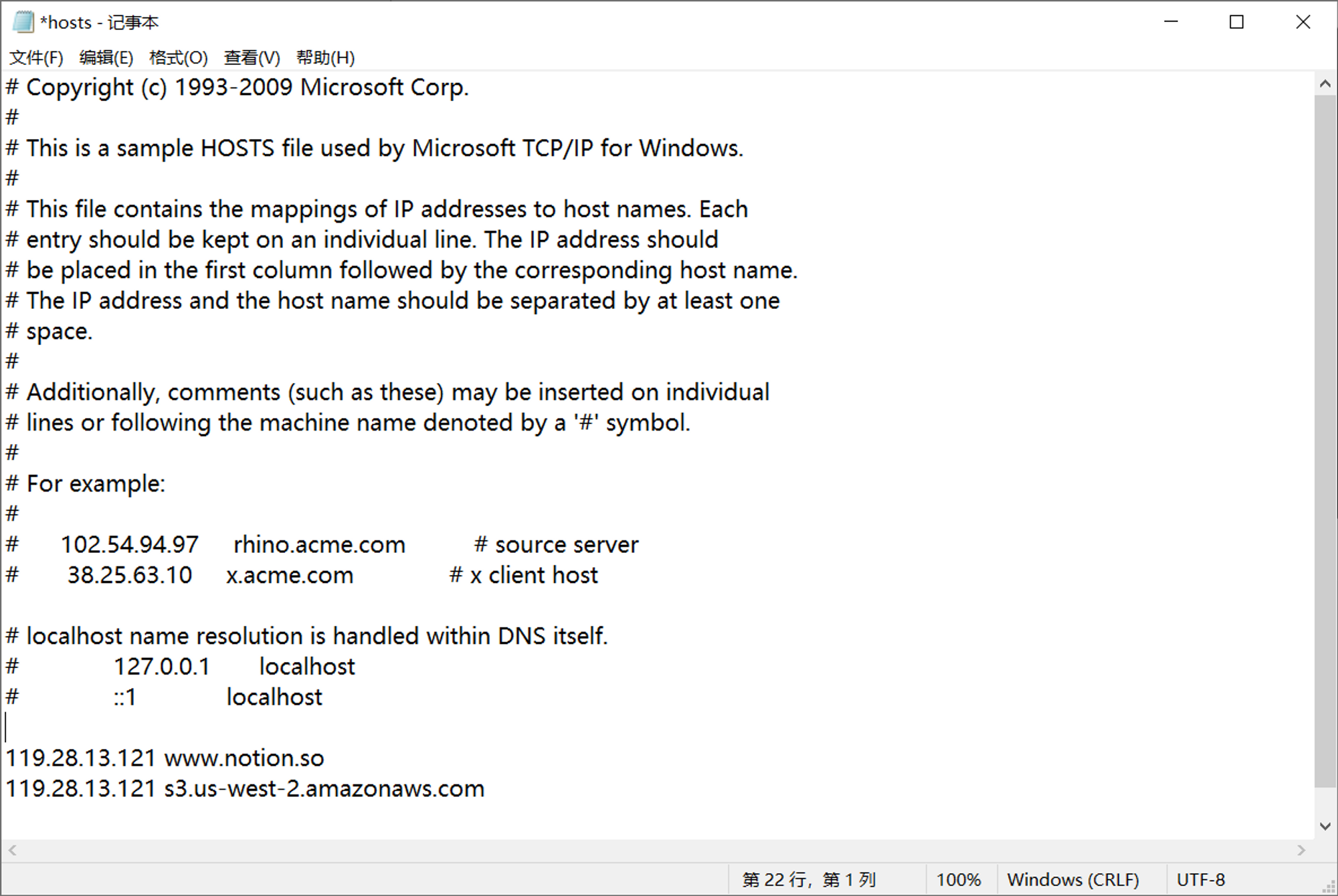 将下方的两行内容加到记事本编辑的文件后面,保存并退出。
